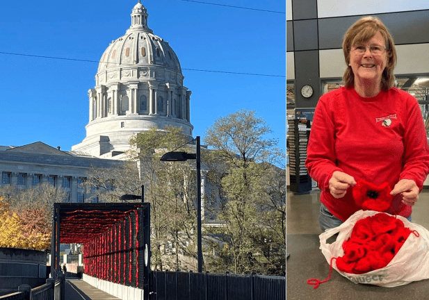 Hand-crocheting memorial poppies to adorn the Bicentennial Bridge in Jefferson City, Missouri