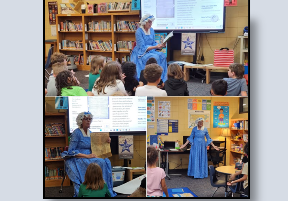 Teaching history and the Constitution in local schools, illustrating period costumes.