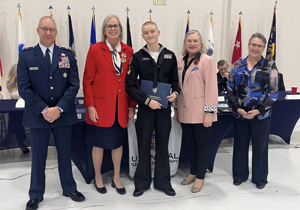 Awarding the Silver DAR Outstanding Cadet Medal to a cadet from the Thomas Jefferson Division of the United States Navy Sea Cadet Corps.