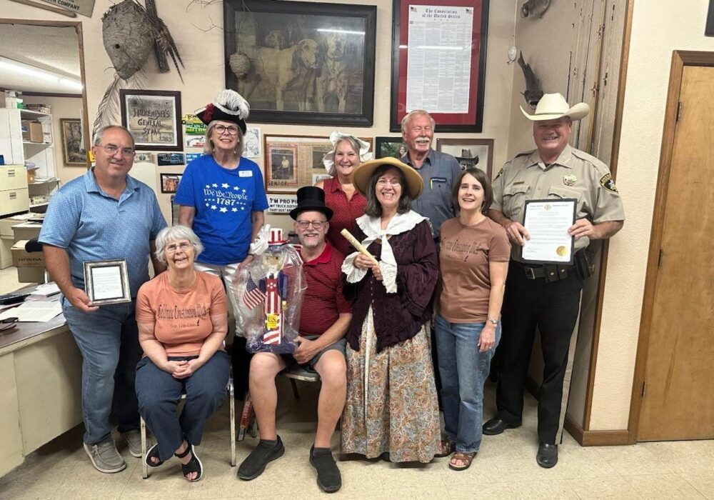 Celebrating Constitution Week with posters and displays set up in the local businesses and schools