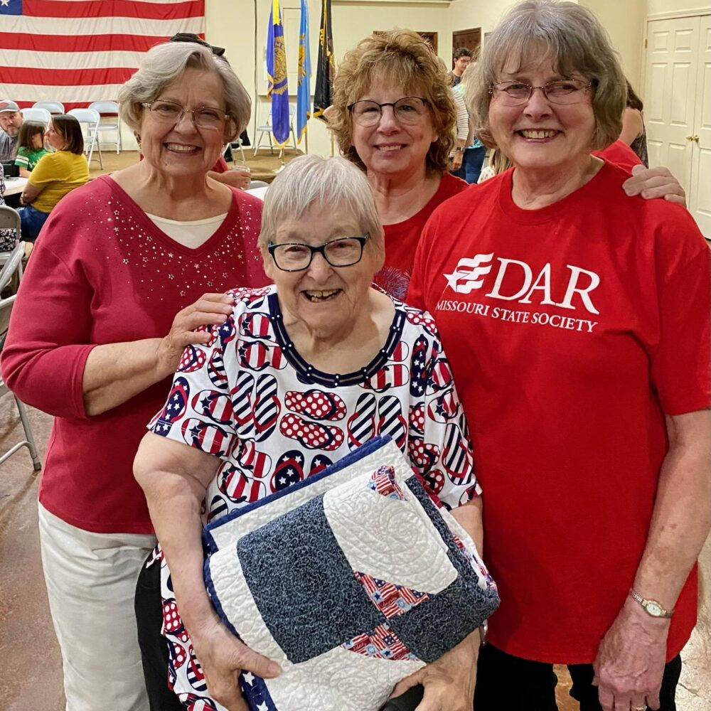 A chapter member who served as a veteran received a Quilt of Valor from the Smithville American Legion Stitches.