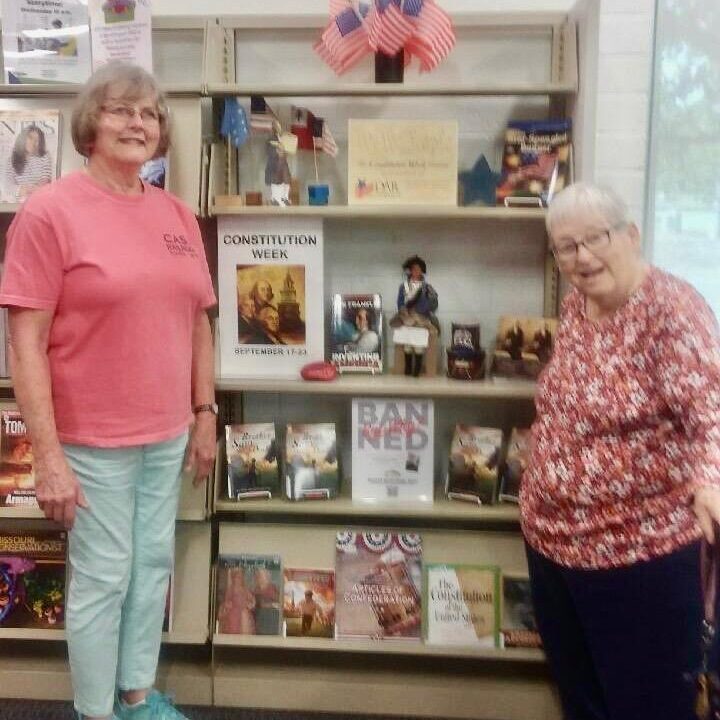 Members set up a Constitution Week display at the school in Edgerton, Missouri.