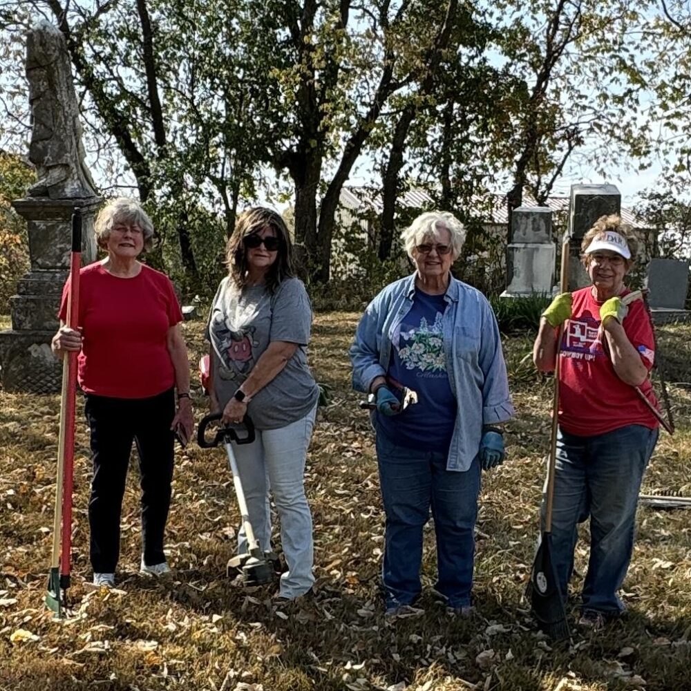 Preservation Day cleanup at the Bethel Cemetery in Lathrop, Missouri.